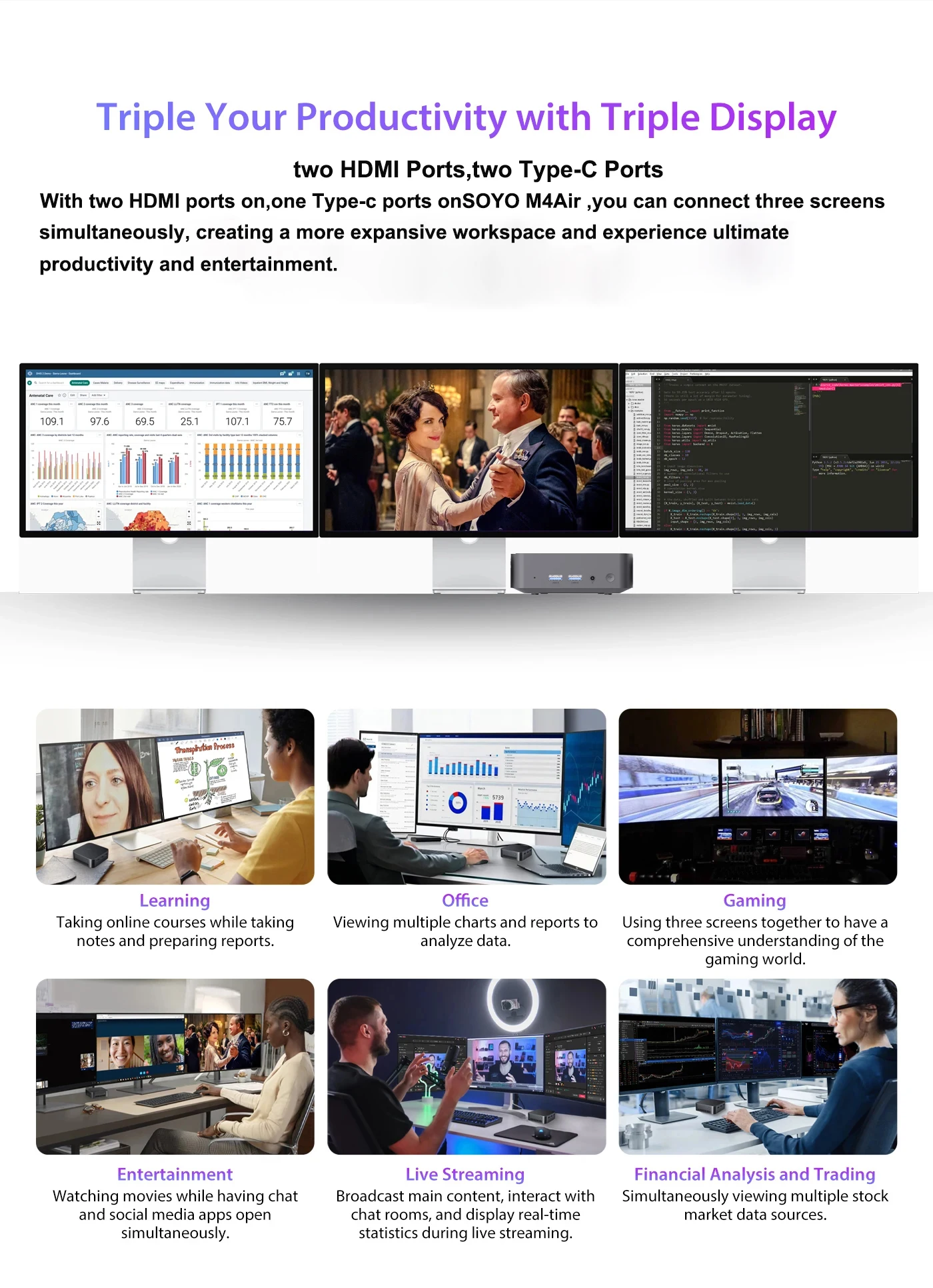 When considering price, the SOYO M4 Air mini PC offers strong value within the compact desktop category. Customers frequently search where to buy this mini PC online, especially during sale events or limited-time promotions. In the United States, Europe, and Australia, authorized sellers provide easy ordering and transparent pricing. Additionally, commercial users benefit from reliable availability and consistent support. As a result, this mini desktop PC remains a popular choice for users seeking performance, efficiency, and affordability in one compact system.
